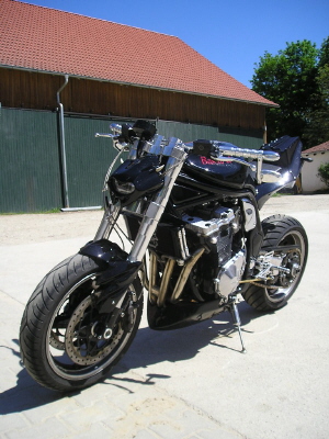 Räder: vorn GSXR SRAD, Horn poliert, hinten PVM 6x17”, Mutter-Abdeckung Eigenbau