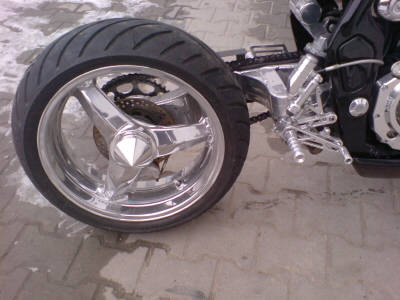 Räder: vorn GSXR SRAD, Horn poliert, hinten PVM 6x17”, Mutter-Abdeckung Eigenbau